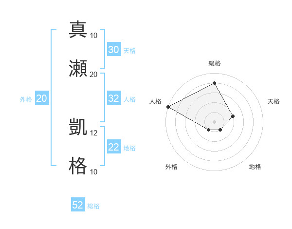 真瀬 凱格さんを姓名の画数から五運を鑑定
