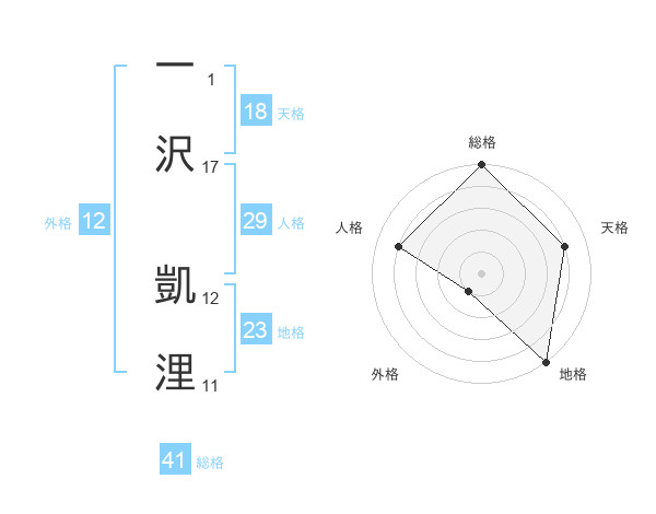 一沢 凱浬さんの天格は18画の4点!