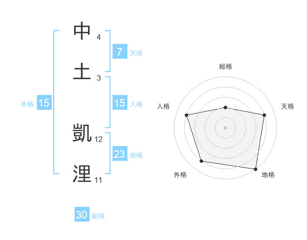 中土 凱浬さんを姓名の画数から五運を鑑定