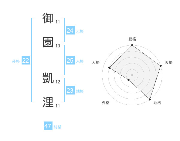 御園 凱浬さんを姓名の画数から五運を鑑定