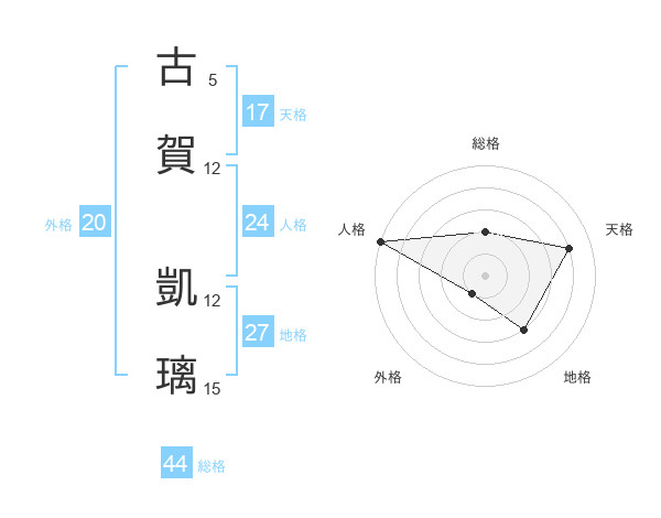 古賀 凱璃さんの天格は17画の4点!