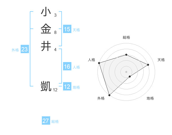 小金井 凱さんの総格は27画の3点!