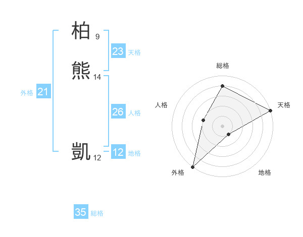 柏熊 凱さんを姓名の画数から五運を鑑定