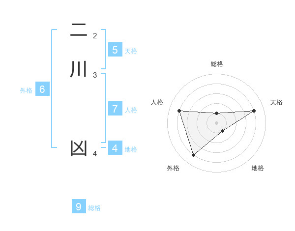 二川 凶さんの天格は5画の4点!