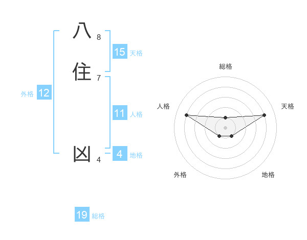八住 凶さんの天格は15画の4点!