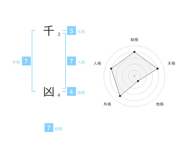 千 凶さんの外格は7画の4点!