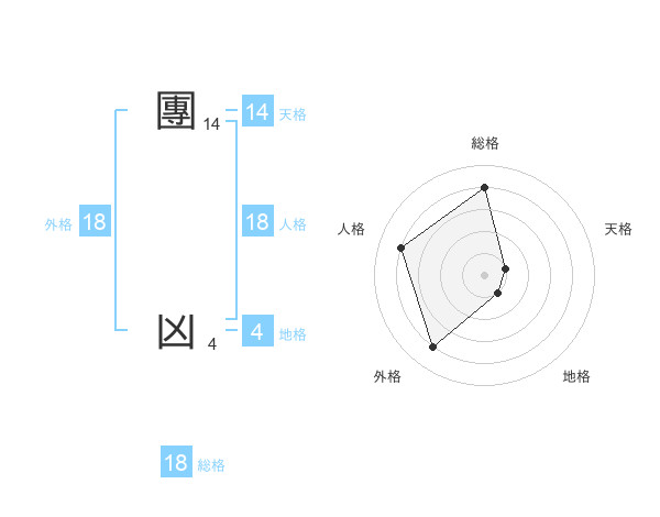 團 凶さんの外格は18画の4点!