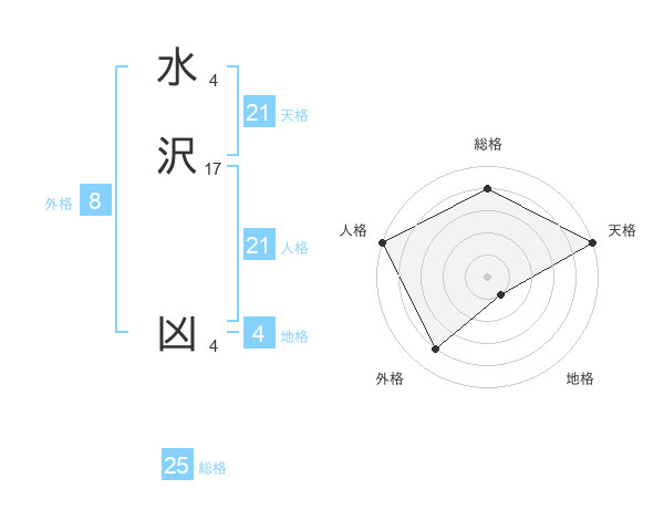 水沢 凶さんの総格は25画の4点!