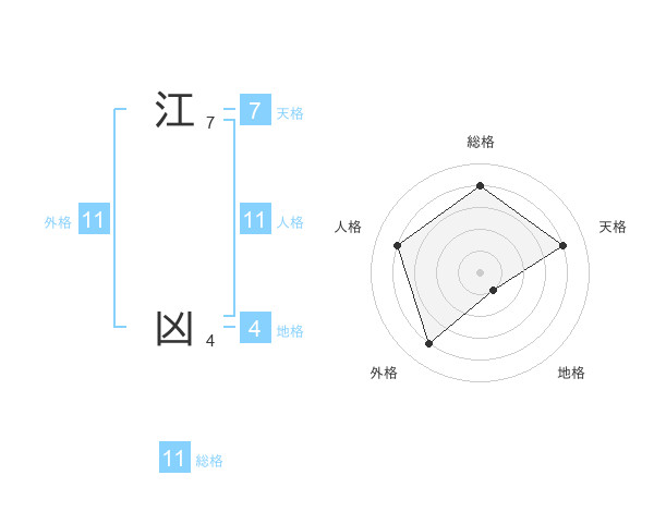 江 凶さんの総格は11画の4点!
