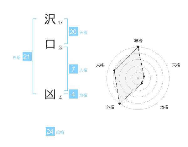沢口 凶さんの総格は24画の5点!