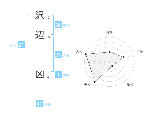 沢辺 凶さんを姓名の画数から五運を鑑定