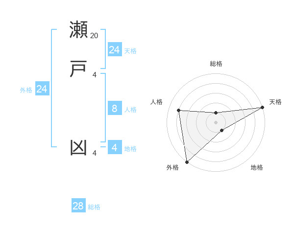 瀬戸 凶さんを姓名の画数から五運を鑑定