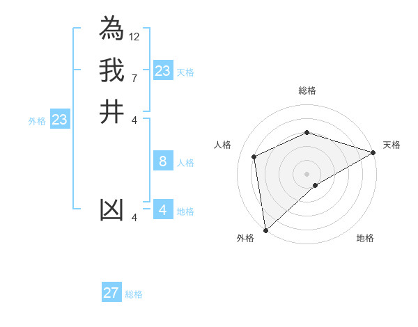 家系が持つ宿命的な運勢を表します。祖先から受け継いだ苗字ですので自分の力が及びません。家柄を象徴します。