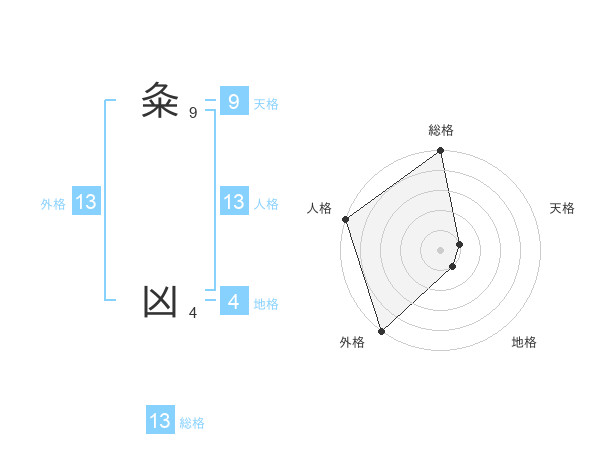 粂 凶さんの外格は13画の5点!