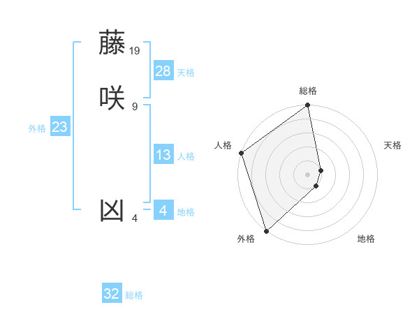 藤咲 凶さんの外格は23画の5点!