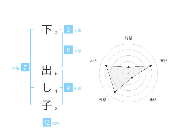 下 出し子さんの総格は12画の1点!