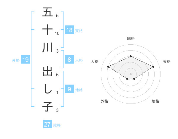 五十川 出し子さんを姓名の画数から五運を鑑定