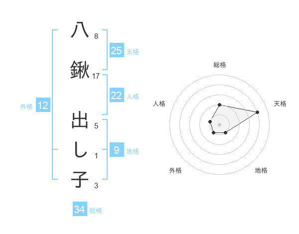 八鍬 出し子さんを姓名の画数から五運を鑑定
