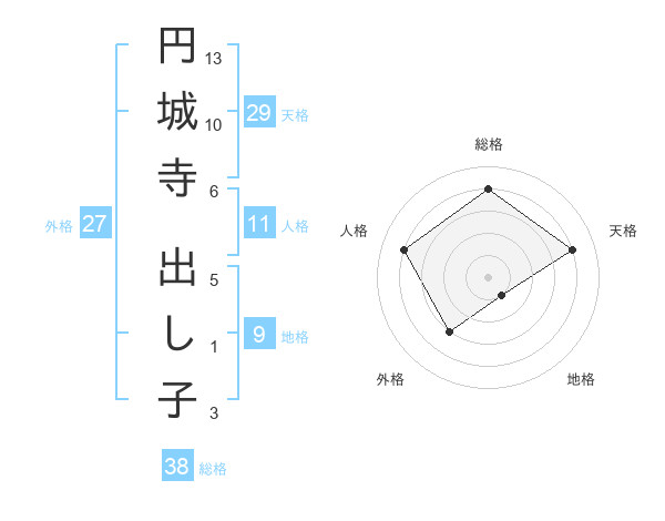 円城寺 出し子さんの総格は38画の4点!