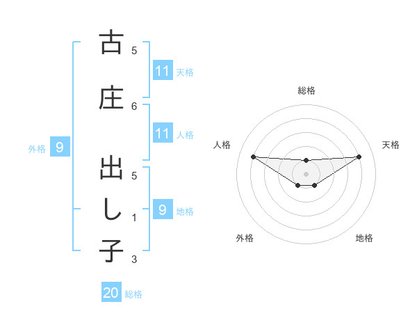 古庄 出し子さんの総格は20画の1点!