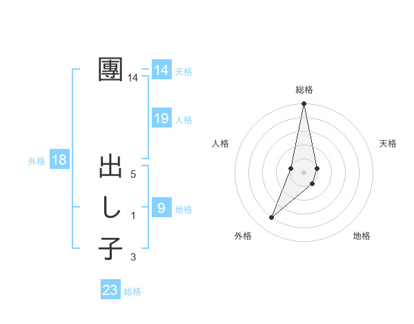 團 出し子さんの天格は14画の1点!
