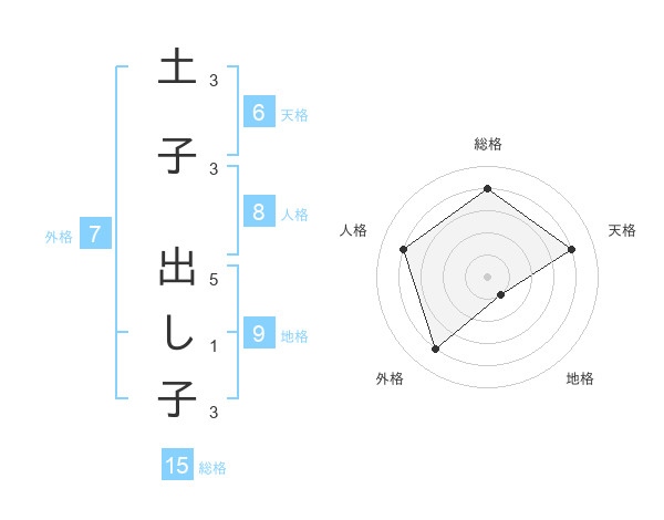 土子 出し子さんの総格は15画の4点!