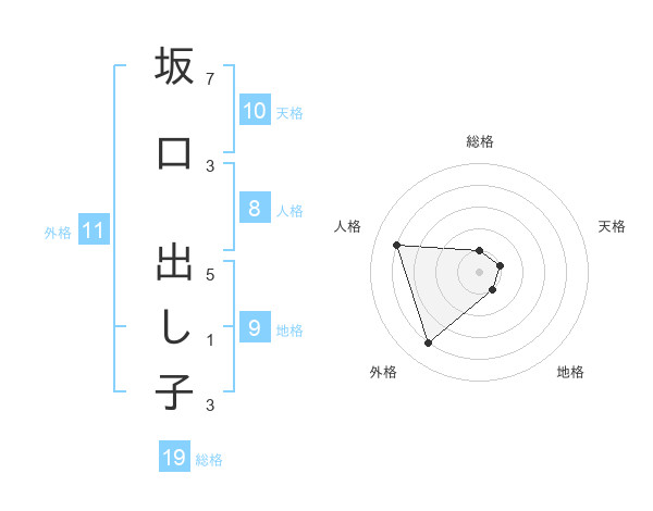 坂口 出し子さんを姓名の画数から五運を鑑定