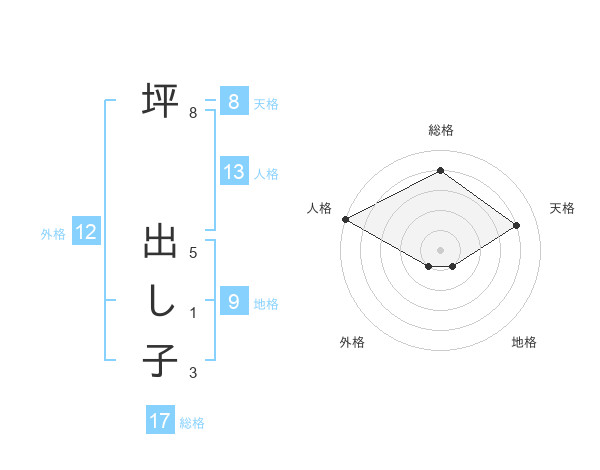 坪 出し子さんの天格は8画の4点!