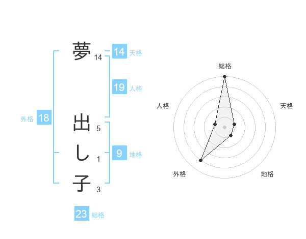 夢 出し子さんの総格は23画の5点!