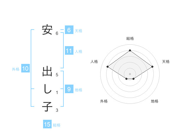 安 出し子さんの天格は6画の4点!