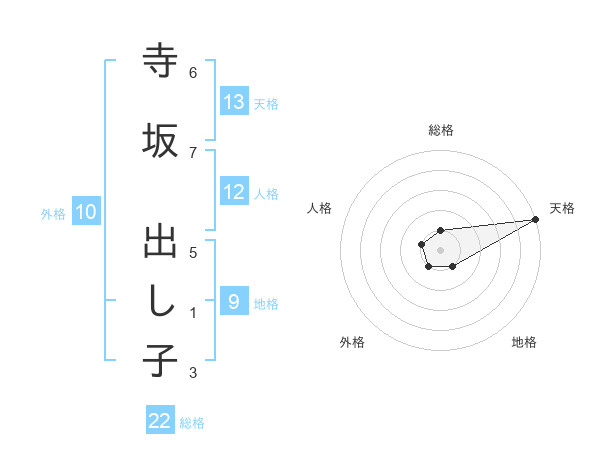 寺坂 出し子さんの天格は13画の5点!