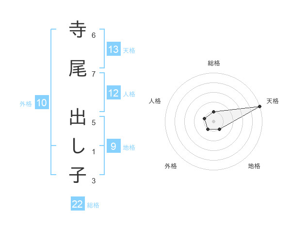 寺尾 出し子さんの天格は13画の5点!