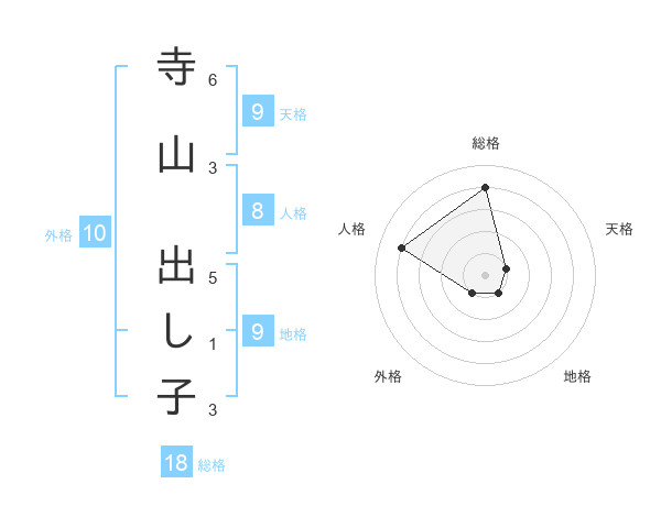 寺山 出し子さんの総格は18画の4点!