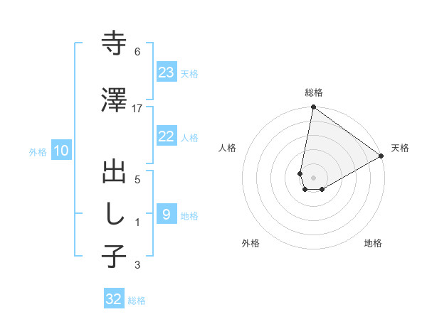寺澤 出し子さんの総格は32画の5点!