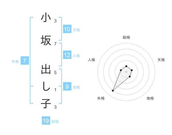小坂 出し子さんの外格は7画の4点!
