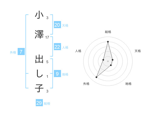 小澤 出し子さんを姓名の画数から五運を鑑定