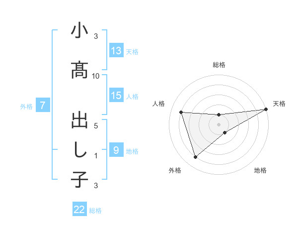 小髙 出し子さんを姓名の画数から五運を鑑定