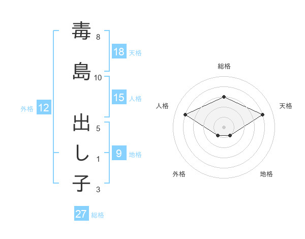毒島 出し子さんを姓名の画数から五運を鑑定