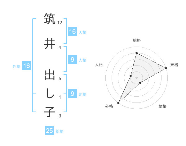 筑井 出し子さんを姓名の画数から五運を鑑定