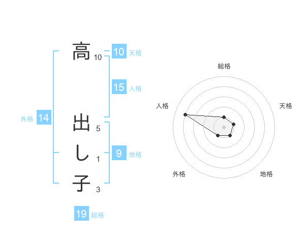高 出し子さんの総格は19画の1点!
