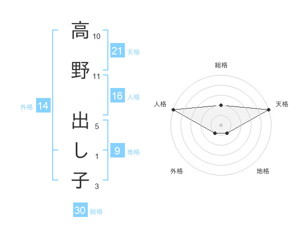 高野 出し子さんの総格は30画の2点!
