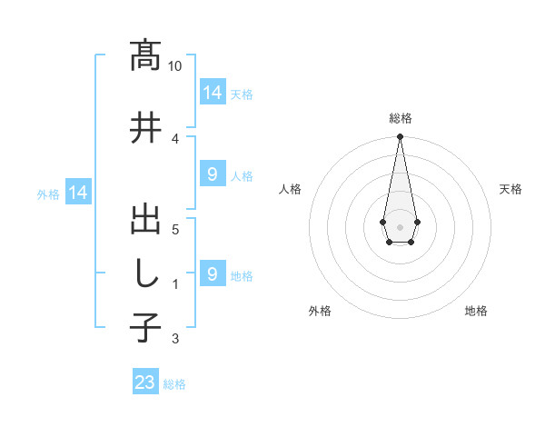 髙井 出し子さんの総格は23画の5点!