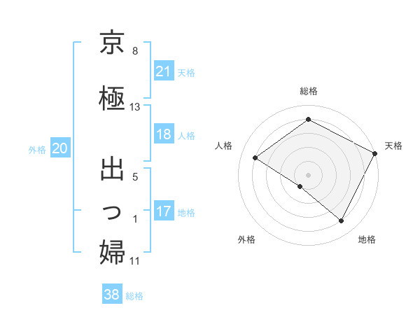 京極 出っ婦さんを姓名の画数から五運を鑑定