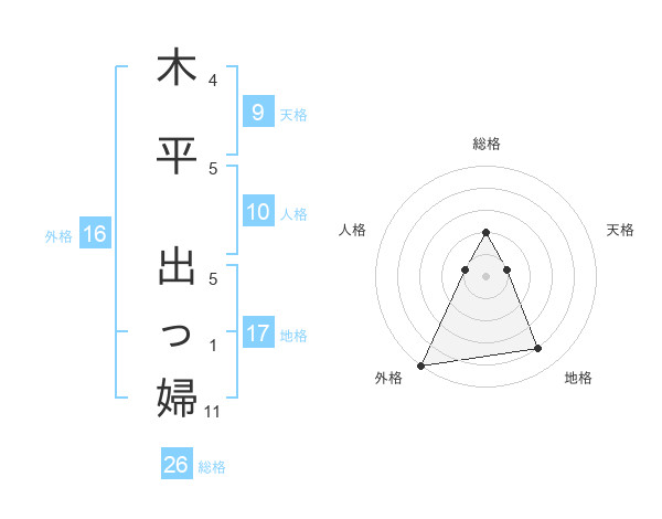 木平 出っ婦さんを姓名の画数から五運を鑑定