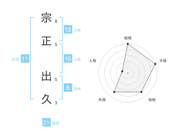 宗正 出久さんの総格は21画の5点!
