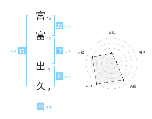 宮富 出久さんの総格は30画の2点!