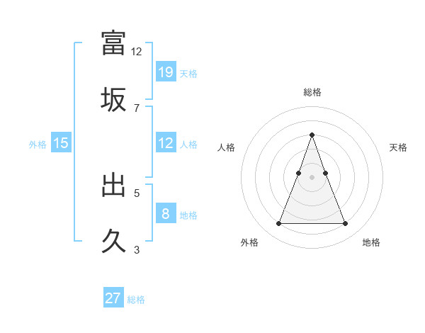 富坂 出久さんの総格は27画の3点!