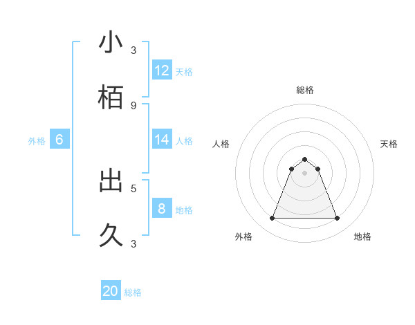 小栢 出久さんの総格は20画の1点!