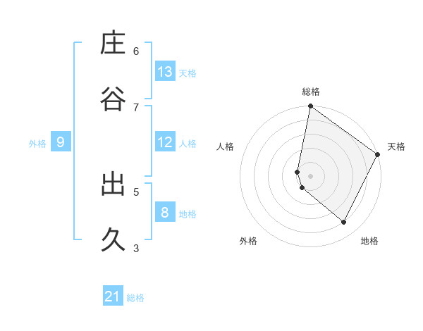庄谷 出久さんの総格は21画の5点!