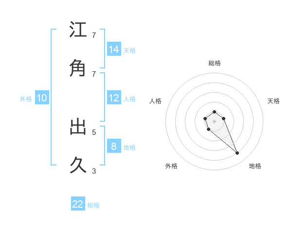江角 出久さんの総格は22画の1点!